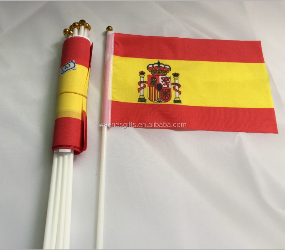 Bandera de mano de poliéster 100% personalizada, Bandera de País de campeonato, exhibición de agencia de viajes de España de 3x5 pies, asta de bandera de fibra de vidrio de nailon de vinilo