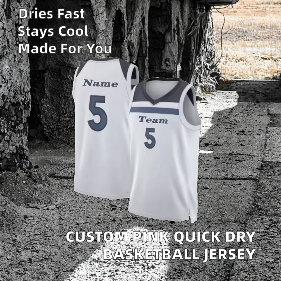 Conjuntos de Camisetas de Baloncesto Unisex Personalizadas, 100% Poliéster, Transpirables, de Secado Rápido, Diseño en Color Rosa, Gran Venta