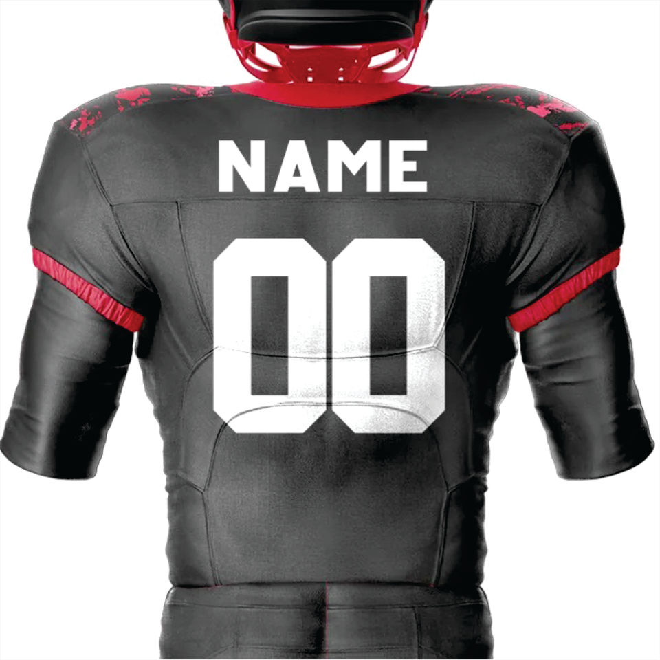 Uniforme de fútbol americano sublimado de poliéster 100% personalizado para hombres Jersey corto de equipo de sarga de aparejos negros y rojos transpirables