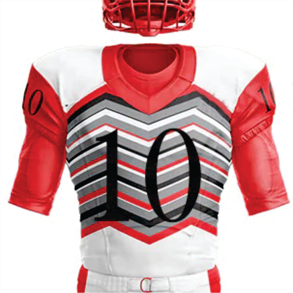 Personalizado 100% poliéster sublimado uniforme de fútbol americano transpirable blanco rojo aparejos sarga equipo corto Jersey logotipo frontal
