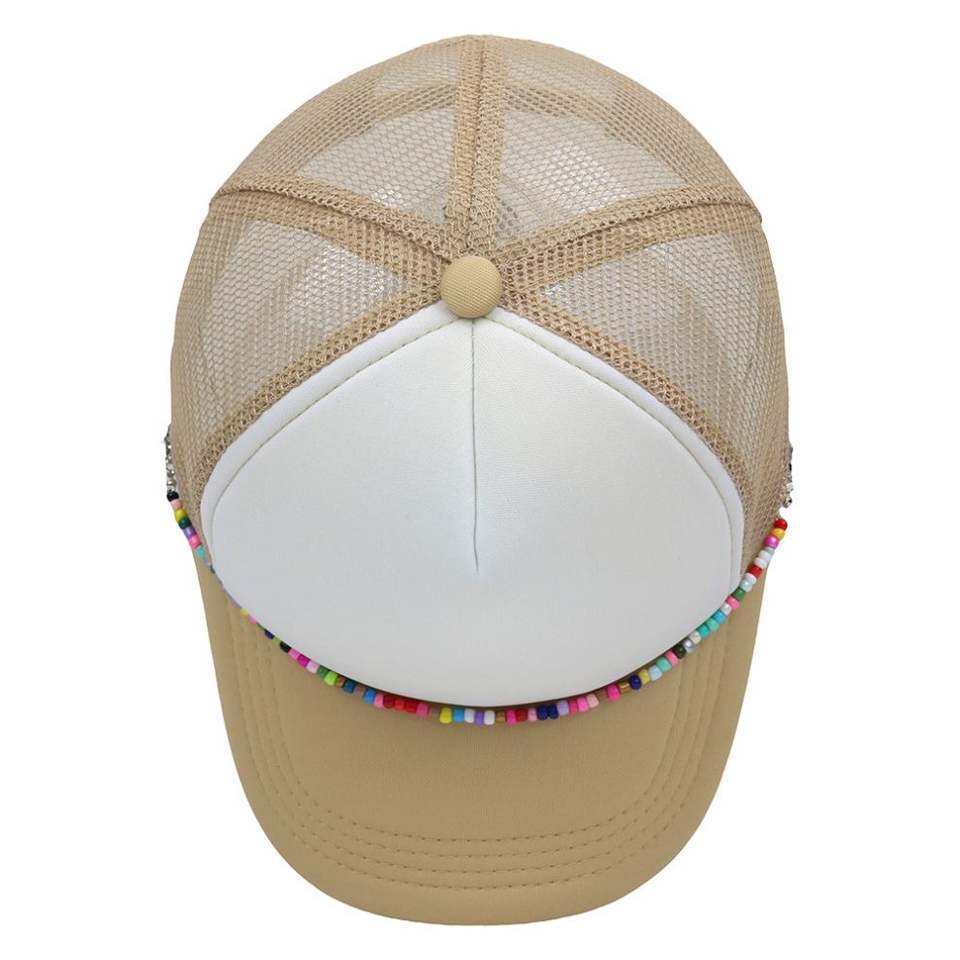 Gorra de camionero personalizada 100% poliéster gorra de camionero con cadenas de cuentas de semillas desmontables y respaldo de malla de espuma
