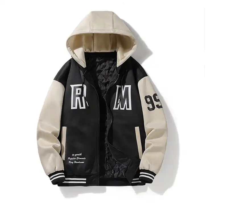 Chaqueta universitaria Y2K de nueva generación para hombre, lana personalizada/poliéster con capucha y letras, manga larga, algodón, lana, bordado, béisbol