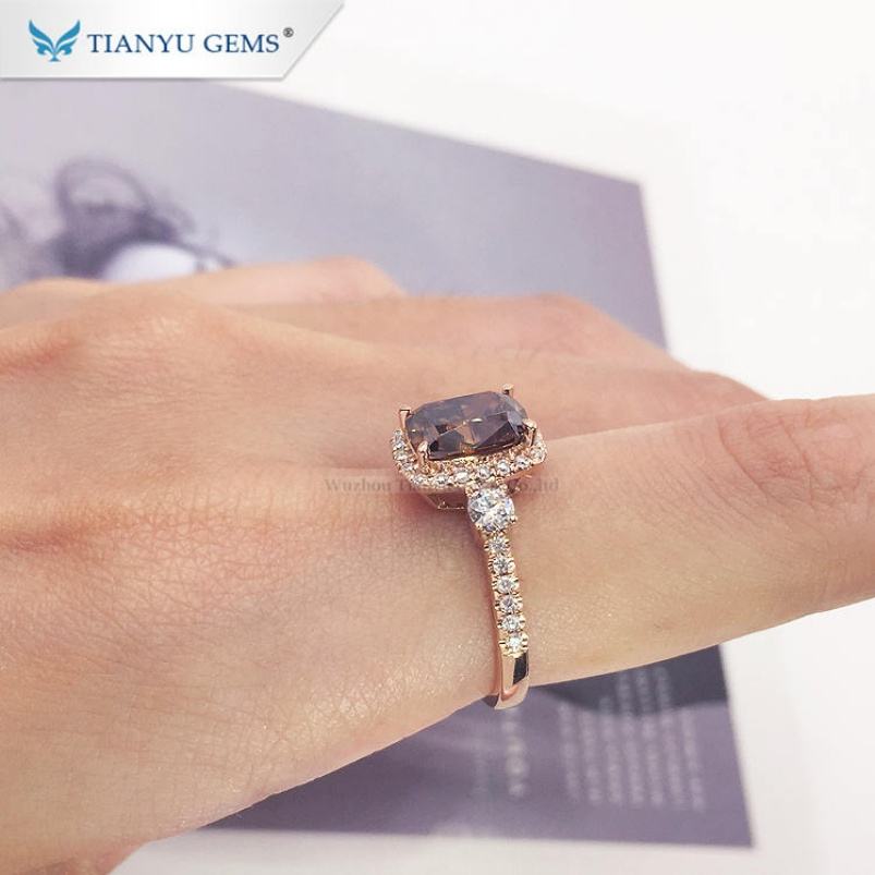 Personalizado 10K 14K 18K Oro sólido Platino Moissanite Diamante Marrón VVS Elonagetd Cojín Anillos de compromiso de boda