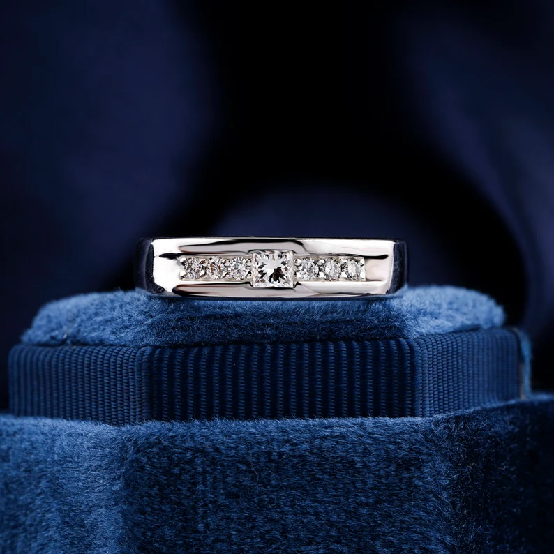 Anillo de Compromiso para Hombre de Oro Amarillo de 10K con Diamante Cultivado en Laboratorio, Corte Princesa, Certificado IGI, Engaste de Bisel, Lujo para Boda