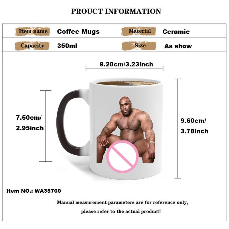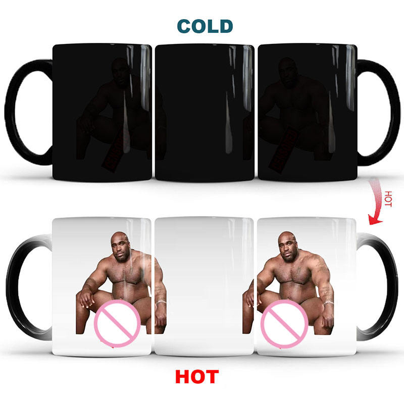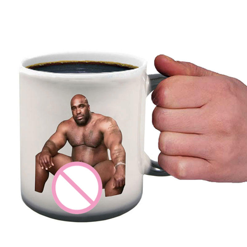 Taza de agua de cerámica con sublimación negra mágica sensible al calor de 11oz personalizada, taza de café con revestimiento de hombre fuerte y musculoso que cambia de Color para hombres