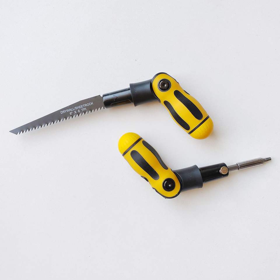 Juego de herramientas multiusos personalizado de 12 piezas para exteriores con sierra de 6 pulgadas, destornillador de acero inoxidable para herramientas de supervivencia en camping y senderismo.