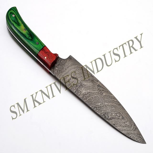 Cuchillo de chef de cocina Damasco hecho a mano personalizado de 13 pulgadas (SMK1160) Hoja de acero al carbono con mango inoxidable para carnicero y carne