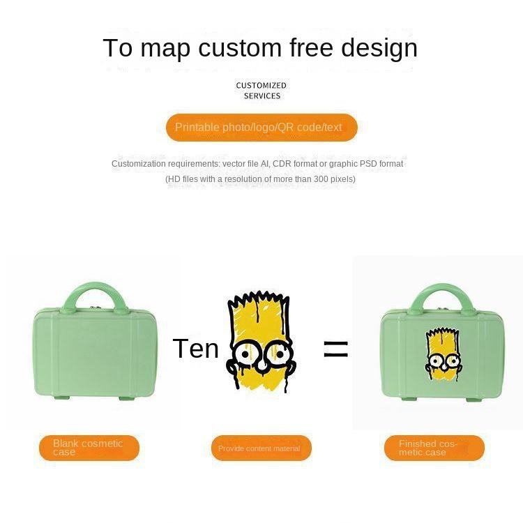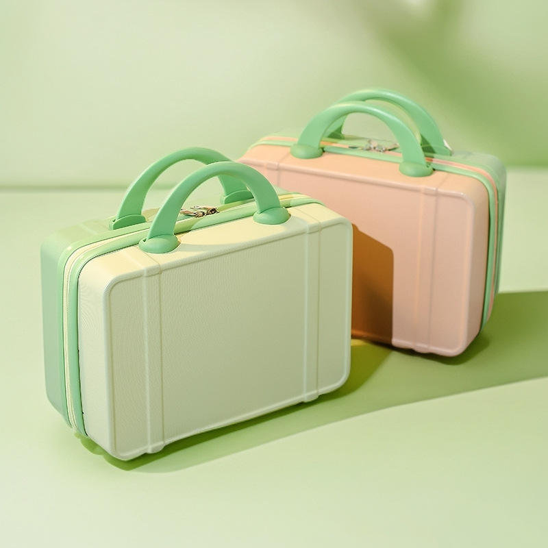 Maleta pequeña personalizada de 14 pulgadas, mini bolsa de almacenamiento de cosméticos de moda con cierre de cremallera, función impermeable y caja de contraseña
