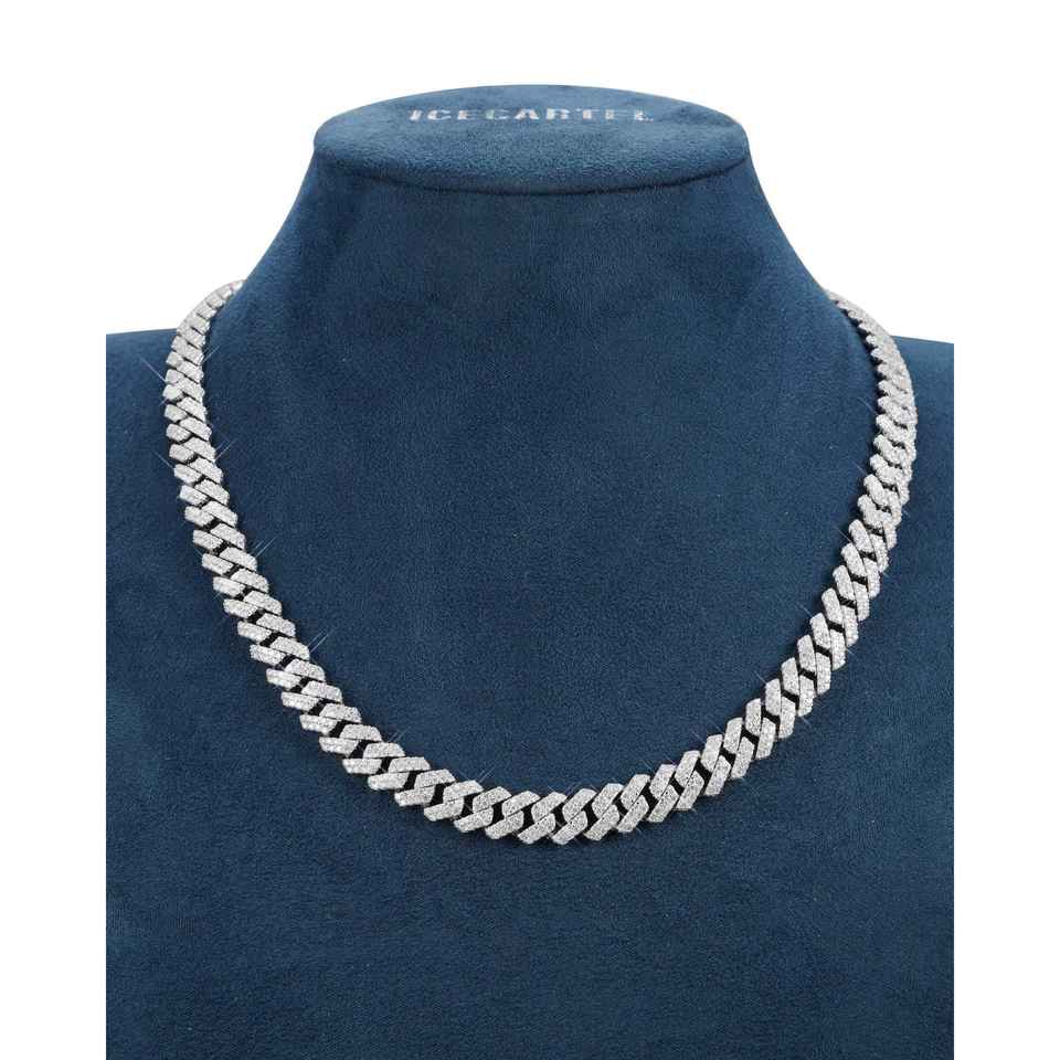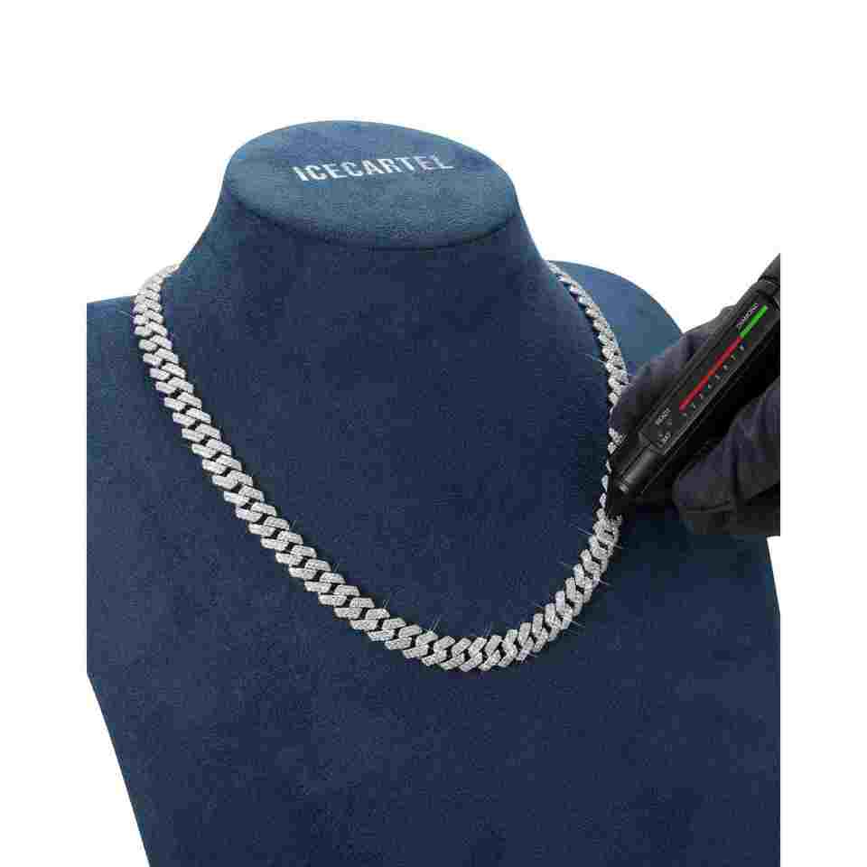 Cadena Cubana de Oro de 14K Personalizada con Forma Geométrica de Moissanita de 2 Filas de 10MM para Regalo