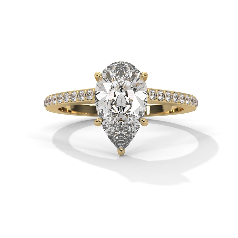 Personalizado 14K oro amarillo IGI certificado 1 CT pera corte laboratorio cultivado diamante anillo de compromiso con halo oculto elegante joyería de la boda