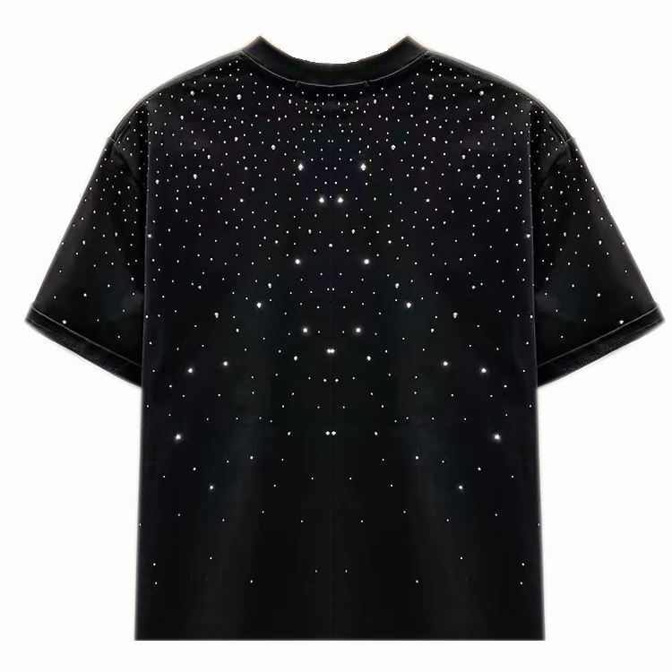 Camiseta Personalizada Unisex de 160 Gsm con Pedrería, Hombros Caídos, Oversize, de Poliéster/Algodón, Transpirable, Diseño Casual Sólido