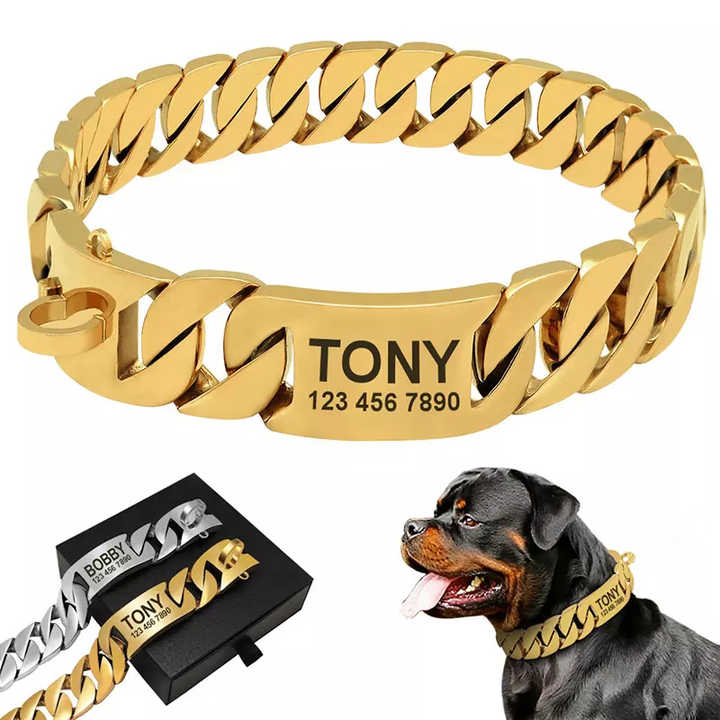 Cadena cubana de acero inoxidable de 18k, placa con nombre, enlace de identificación, cadena para perro