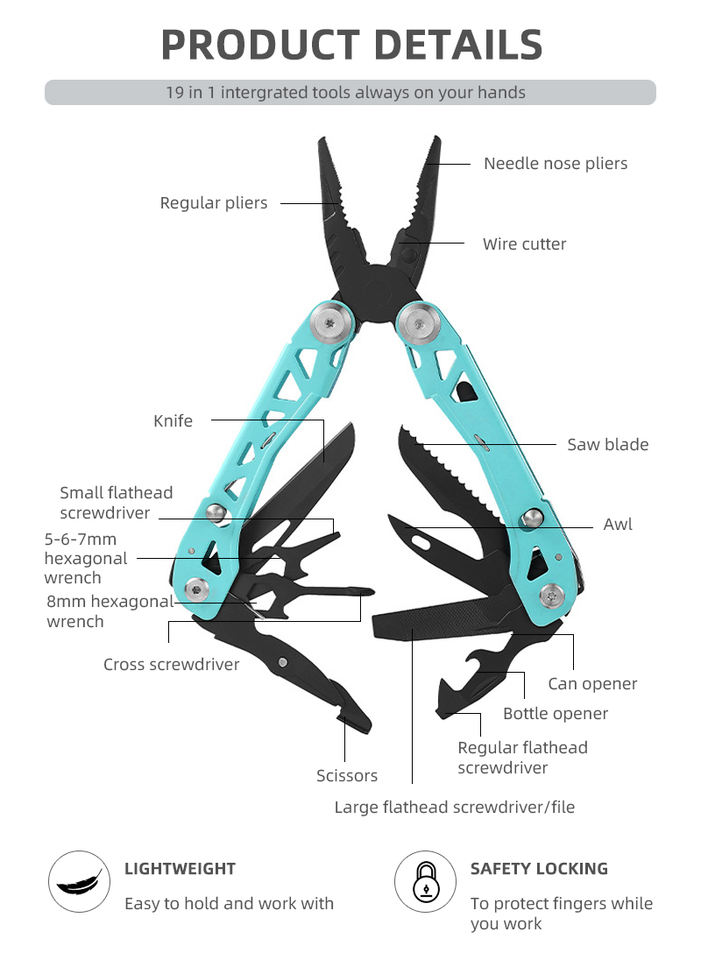 Alicates Multiherramienta Personalizados 19 en 1, Herramienta Multiusos EDC con Navaja de Bolsillo, Equipo de Supervivencia y Camping