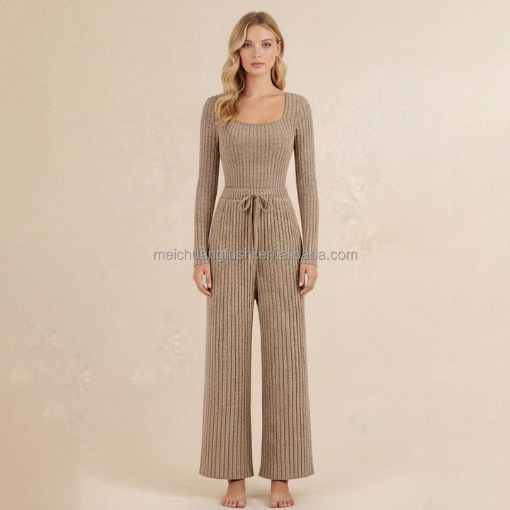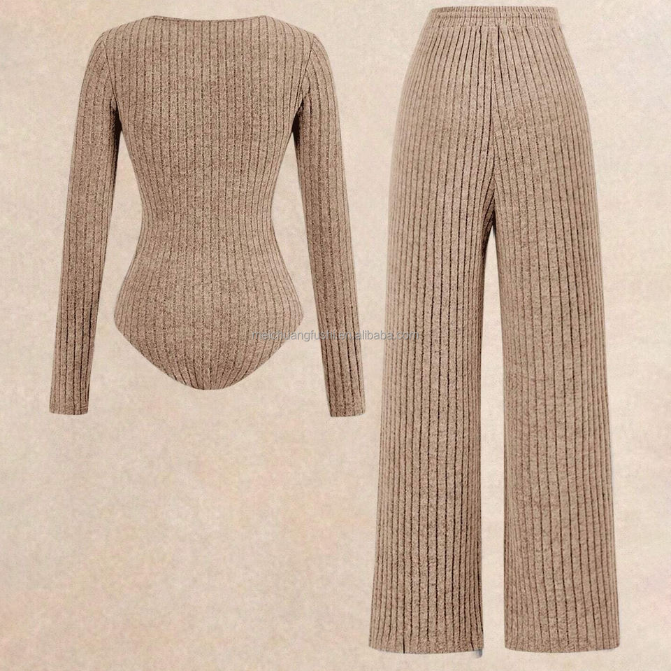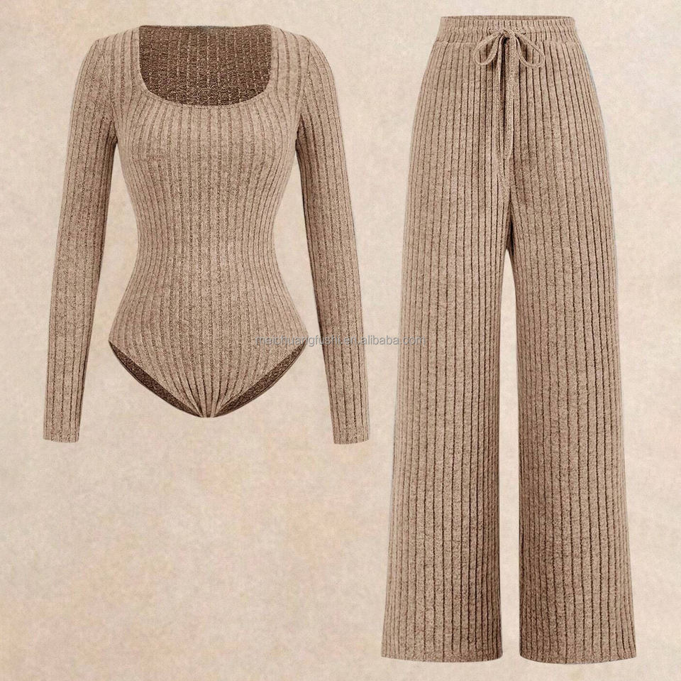 Conjuntos de entrenamiento de 2 piezas personalizados con pantalones de canalé para mujer, ropa de invierno para damas