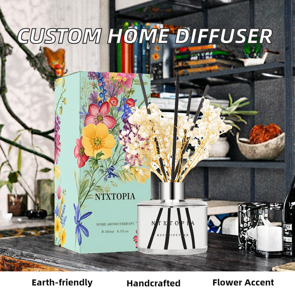 Difusor de Aromas Personalizado de 200 ml, Ecológico, Hecho a Mano, con Flores Secas, para Decoración del Hogar