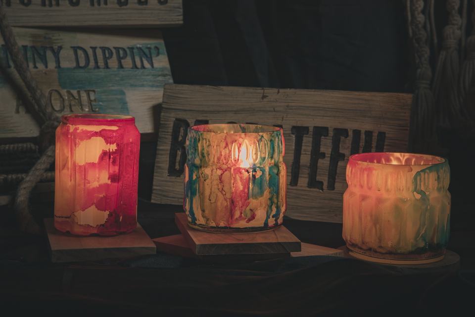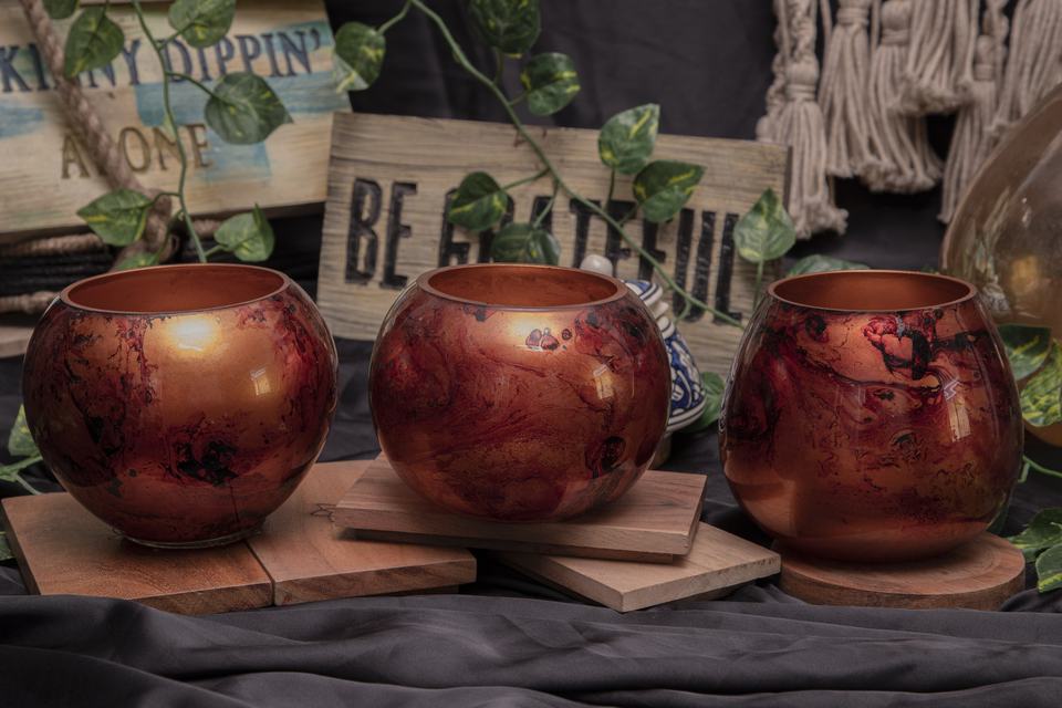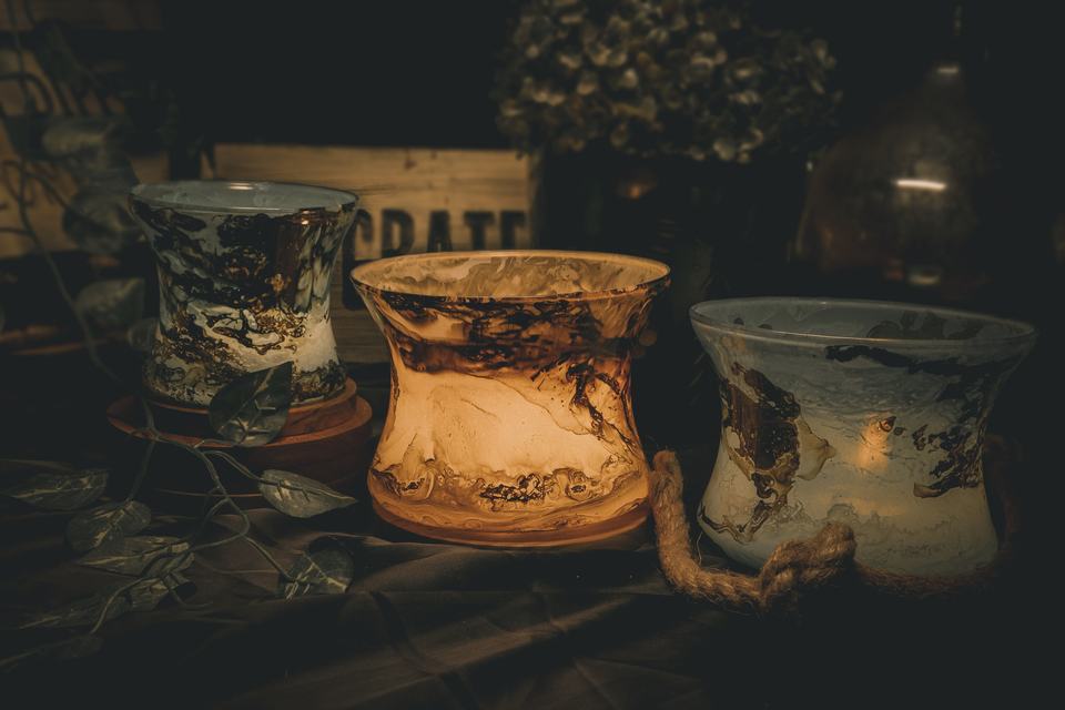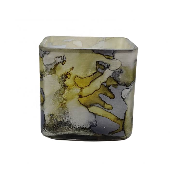 Vaso de Cristal Cuadrado Pequeño para Velas, Hecho a Mano, de Alta Calidad, con Diseño Marmoleado Gris-Amarillo, Decorativo y Multiusos