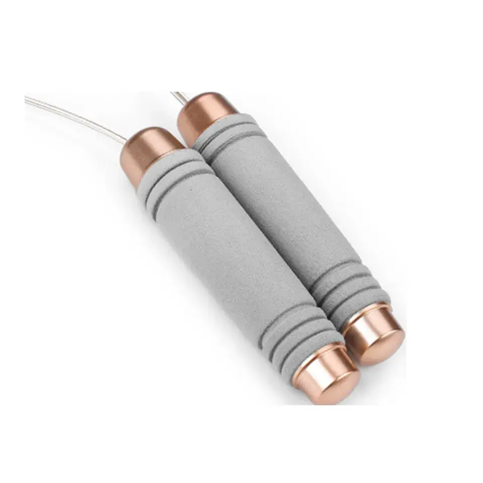 Cuerda de saltar personalizada 2023 con mango de cuero PU Alambre de acero inoxidable ABS/Cuerda de saltar ponderada de metal de goma
