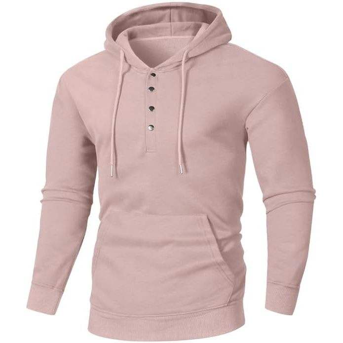 Personalizado 2023 hombres de algodón con capucha pulóver sudaderas botón cuello cordón Casual manga larga bolsillo sólido patrón-XL tamaño