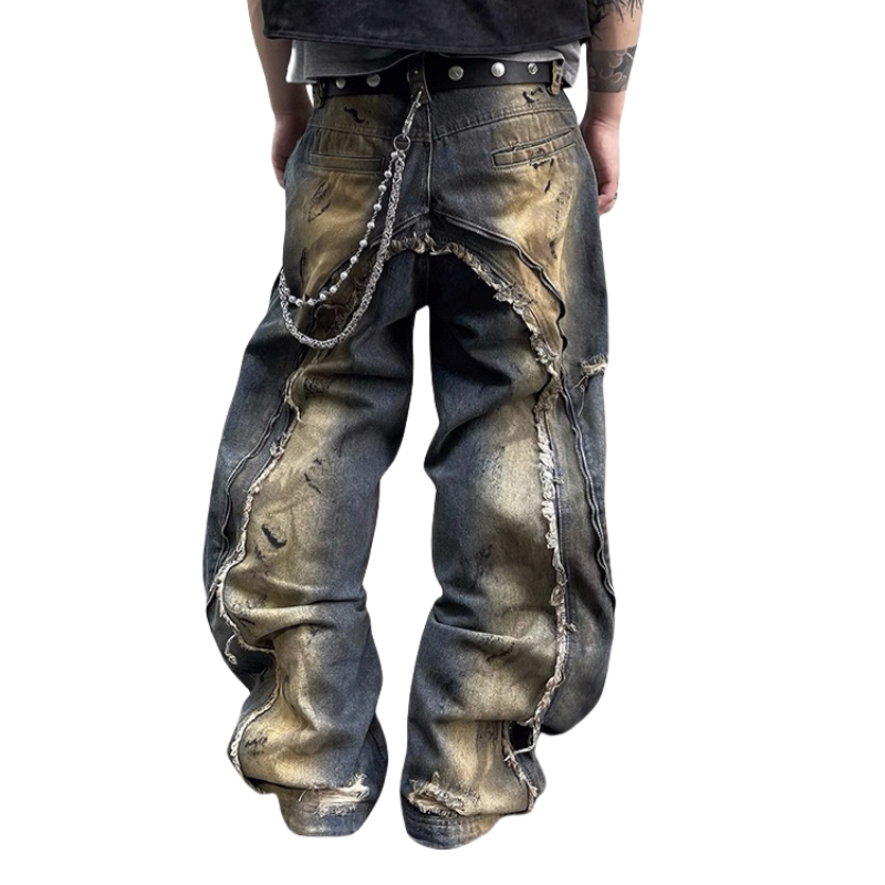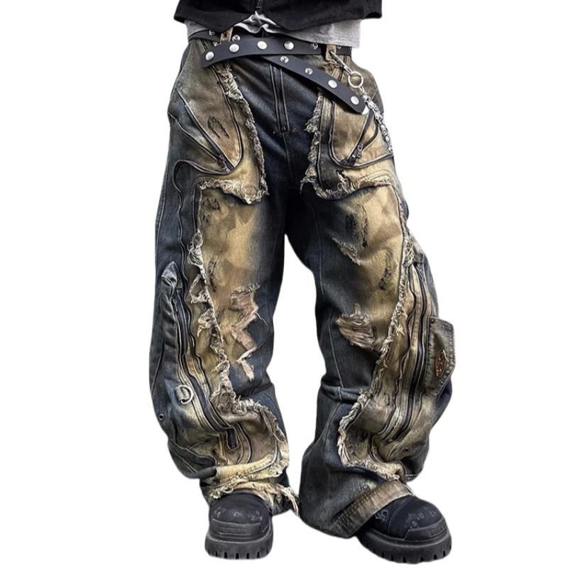 Jeans Personalizados 2024 Estilo Y2K, Desgastados, con Flecos, Holgados, Tipo Cargo, con Bolsillos, para Hombre y Mujer