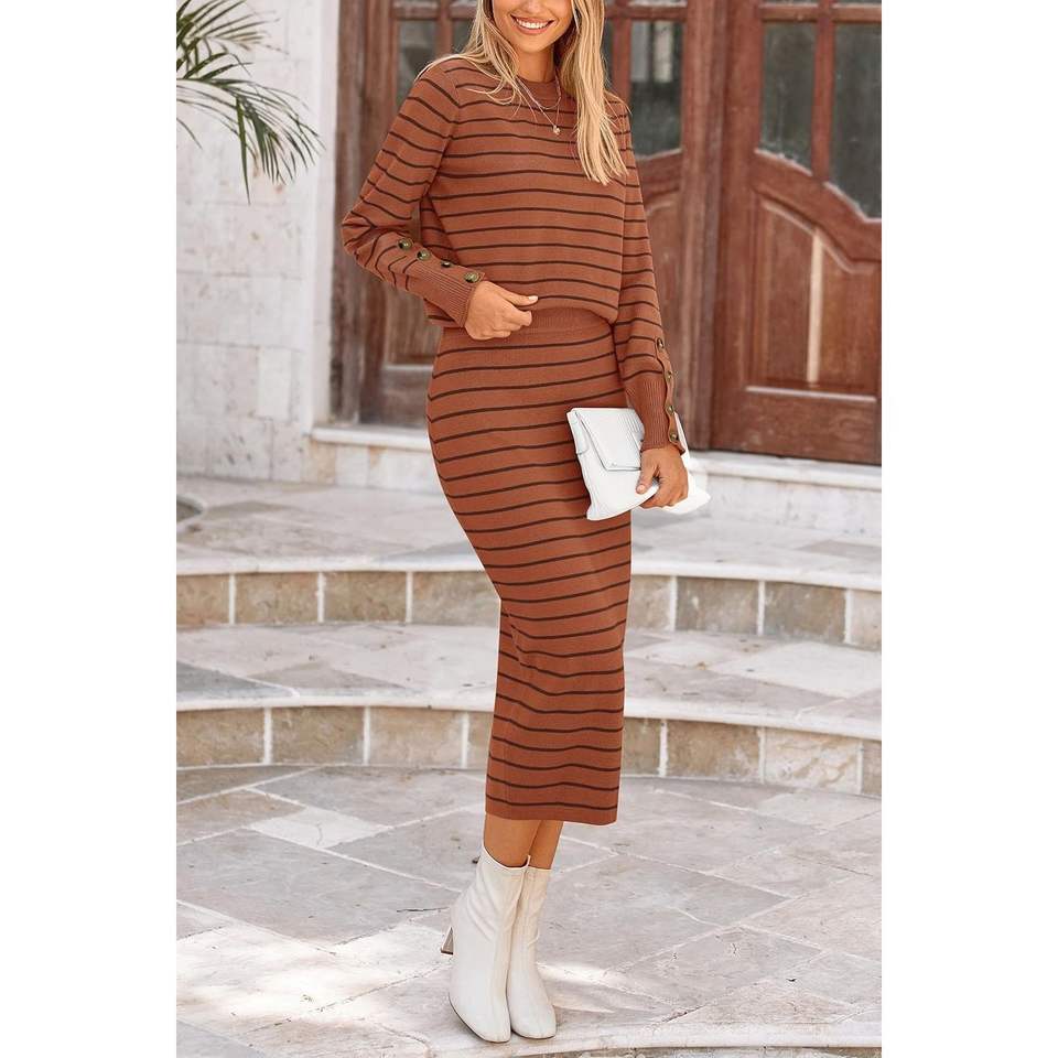 Conjunto de Ropa de Mujer para Otoño 2025, Personalizado, Talla XS/XS, Conjunto de 2 Piezas con Falda y Vestido Suéter a Rayas para Estar en Casa, Viajar, Ropa de Invierno