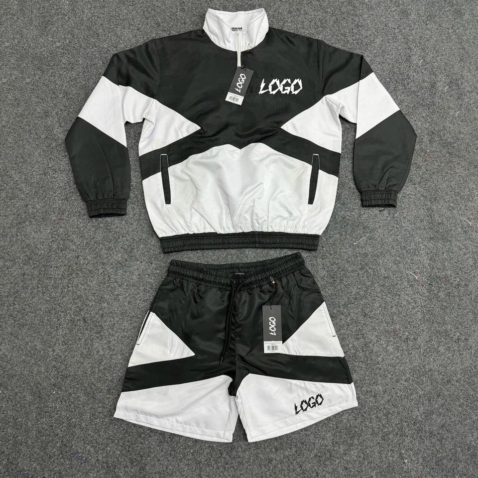 Conjunto de traje de entrenamiento deportivo para correr para hombre de otoño 2025 personalizado chaqueta cortavientos con media cremallera y pantalones cortos chándal de alta calidad