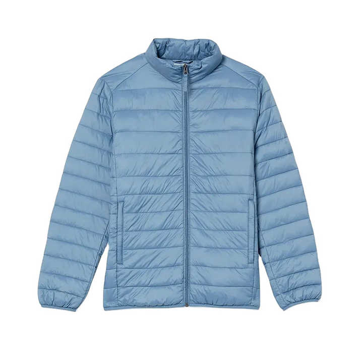 Chaquetas Acolchadas para Hombre, Diseño Personalizado 2025, Tela de Poliéster de Alta Calidad, Color Azul Claro, Corte Ajustado, Cuello Alto, para Invierno