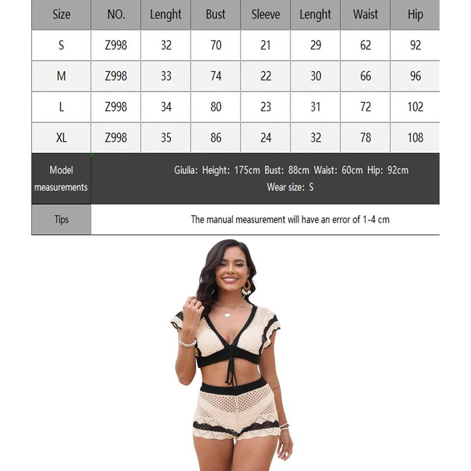 Conjunto de Playa Personalizado 2026: Top Calado y Shorts con Cuello en V Profundo, Manga con Volantes y Cintura Elástica - Atuendo de Verano de 2 Piezas