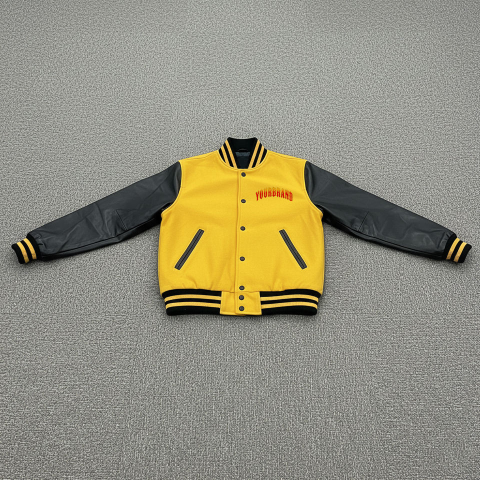 Chaqueta Varsity Personalizada 2026 con Logotipo Bordado en Chenilla, 100% Lana, Cálida, Resistente al Viento, con Mangas de Cuero, Estilo Urbano