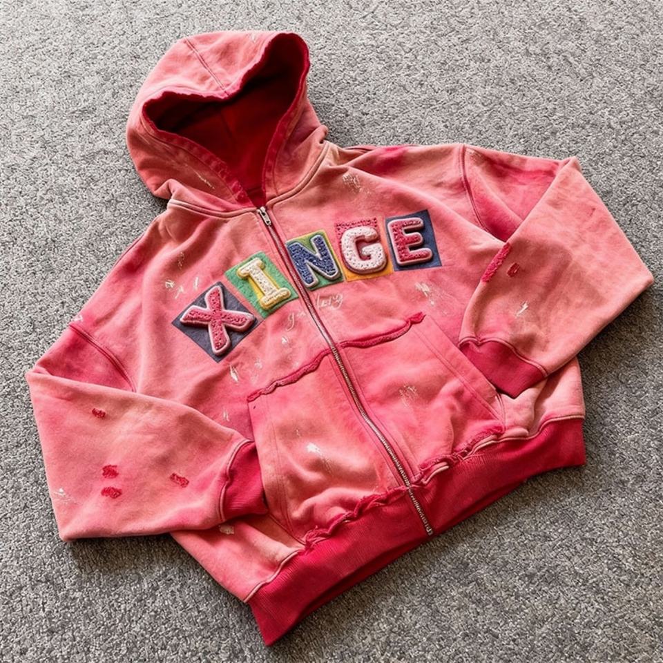 Sudadera con capucha personalizada estilo urbano 2026, diseño desgastado, vintage, con bordado 3D, para hombre, corte holgado, con cremallera, lavado ácido