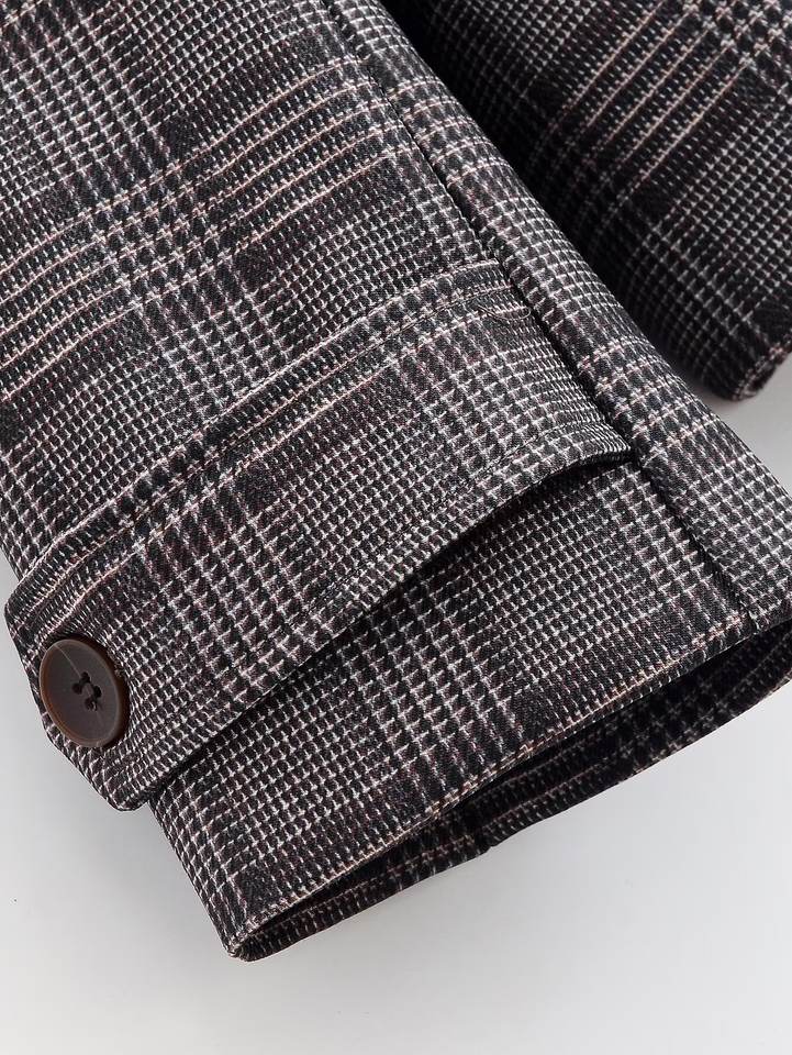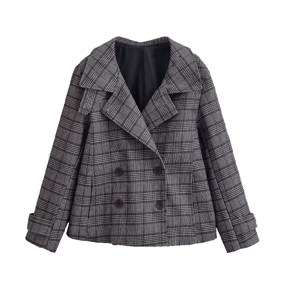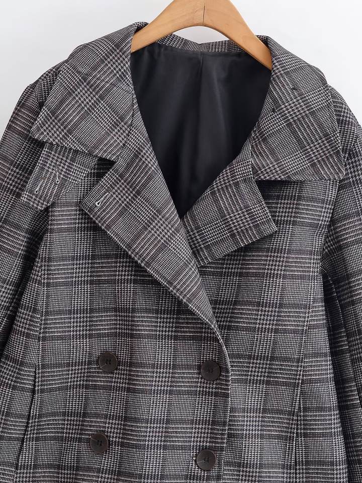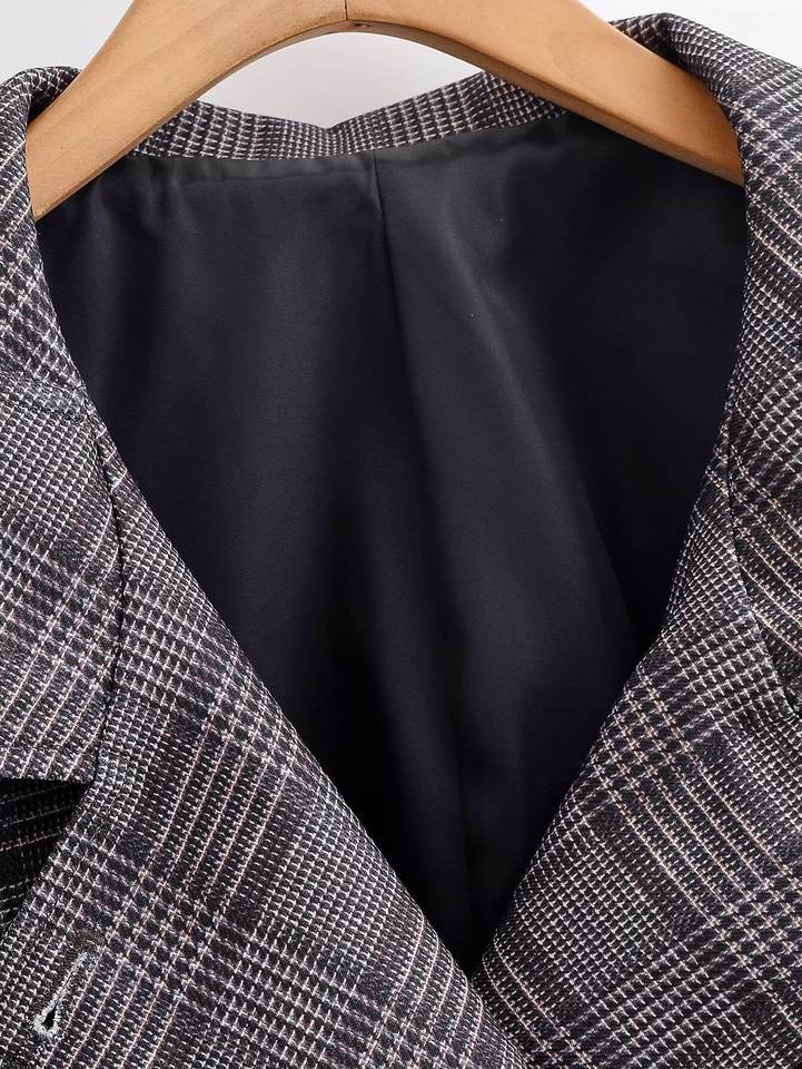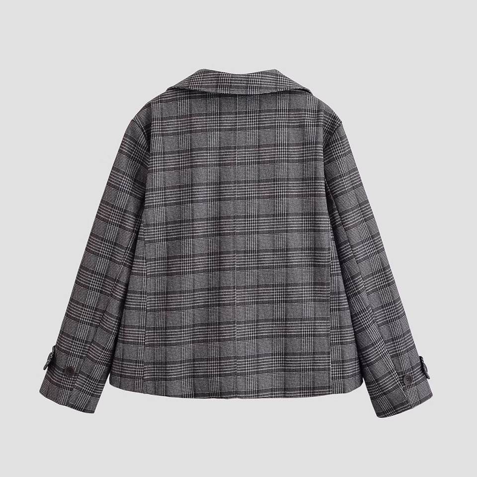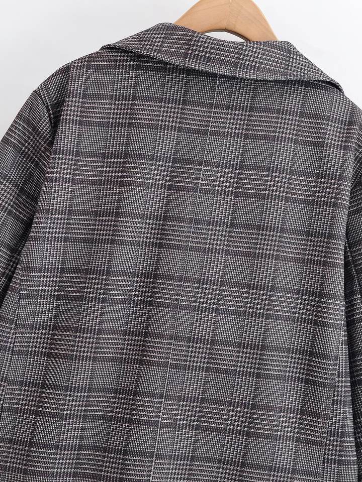 Blazer a Cuadros Oversize Personalizado para Mujer, Primavera 2026 - Chaqueta Formal de Oficina Casual Retro con Doble Botonadura, OEM/ODM por Fábrica China