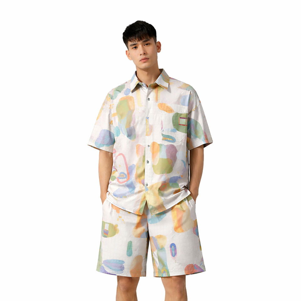 Conjunto de Camisa Estampada y Pantalones Cortos para Hombre