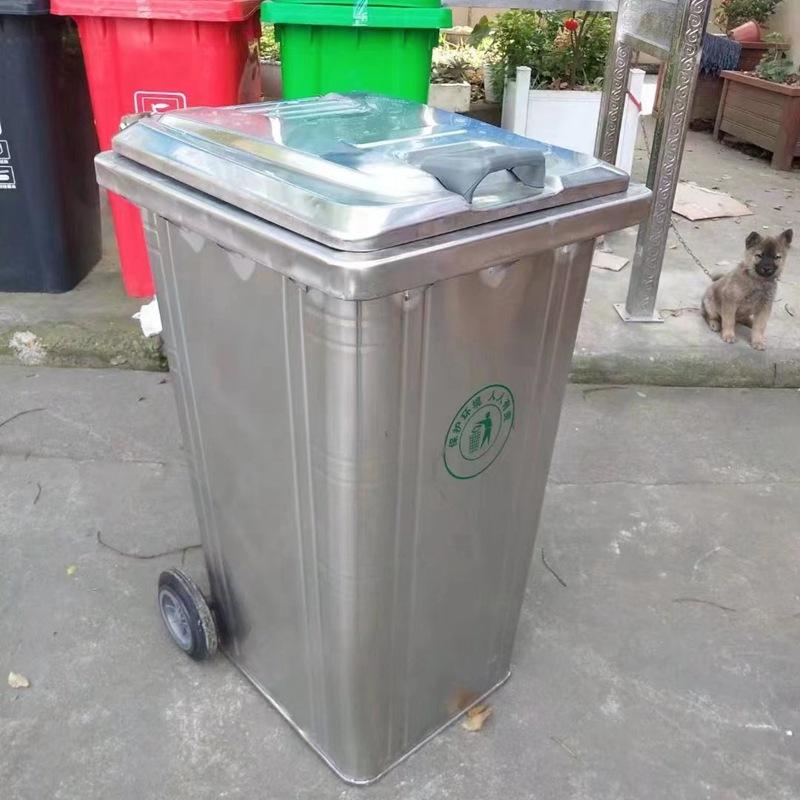 Contenedor de Basura Personalizado de Acero Inoxidable de 240L con Tapa y Ruedas, Contenedor de Basura Metálico Portátil de Gran Capacidad de 120 Litros, Estilo Remolque de 100L para Exteriores