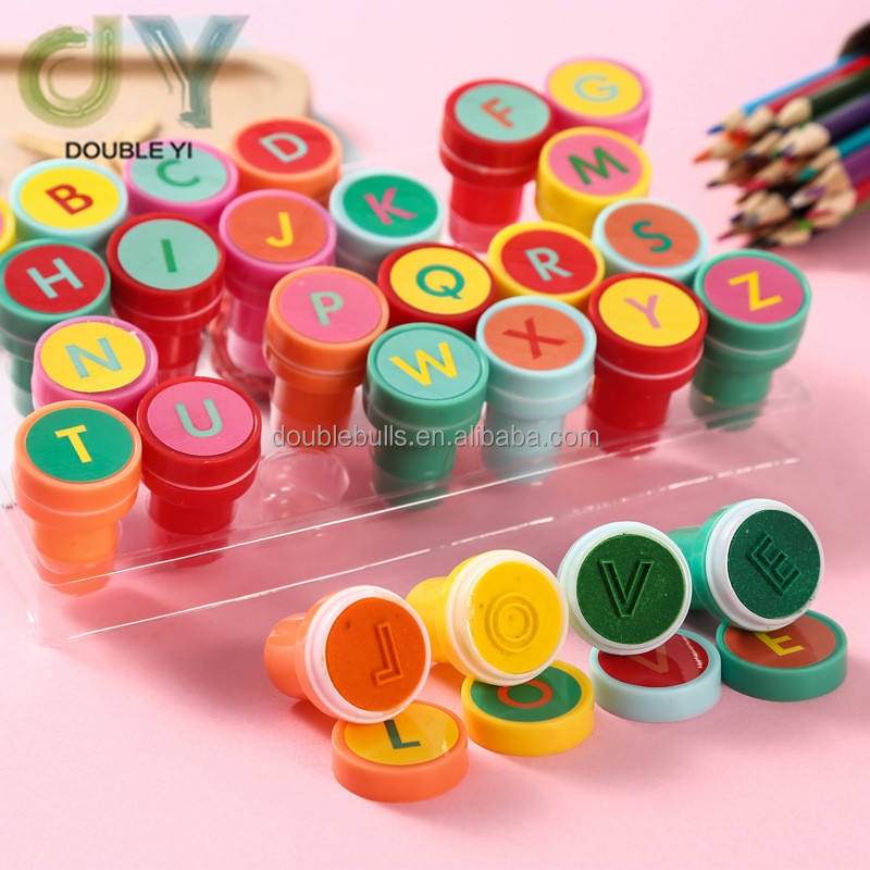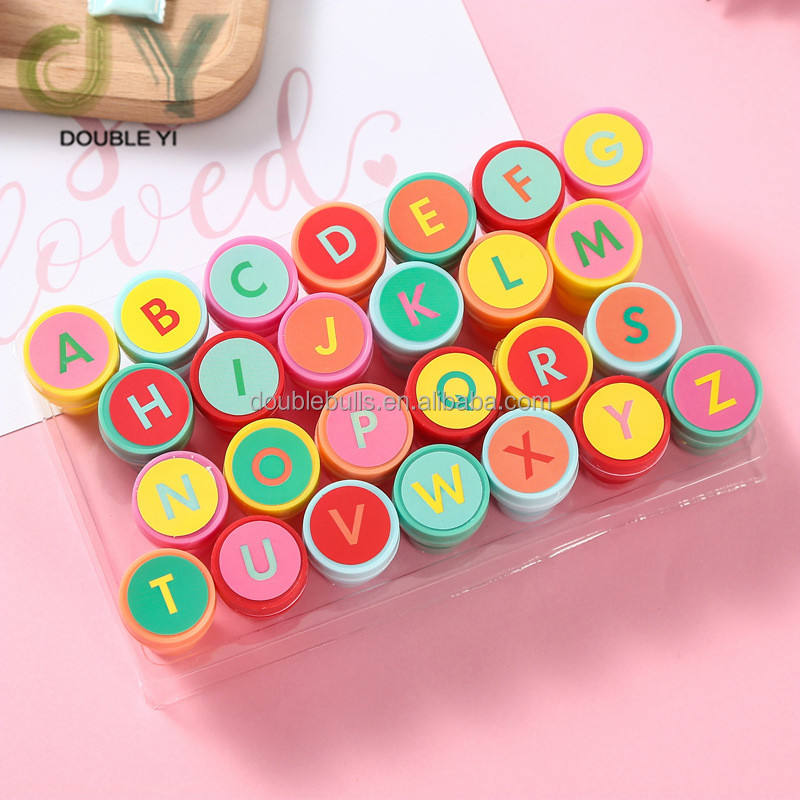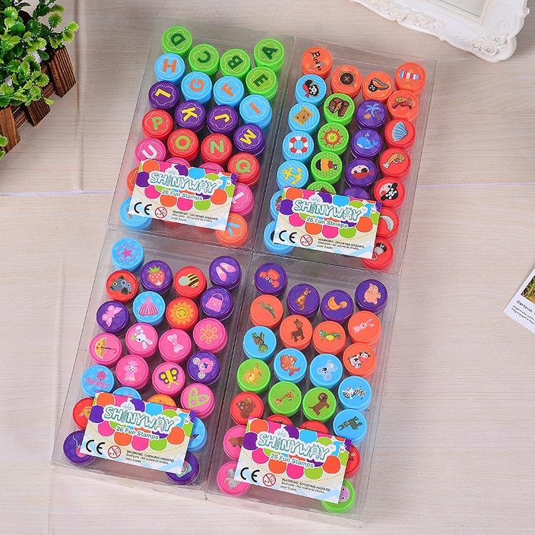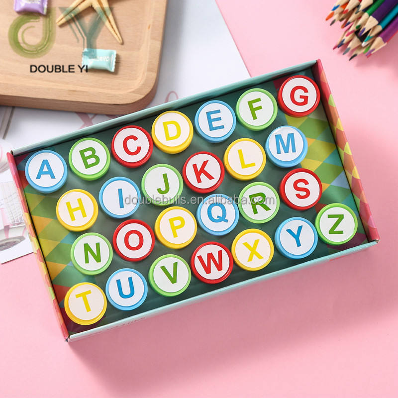 Juego de Sellos Redondos de Plástico con Temática de Fantasía y Ciencia Ficción, 26 Letras del Alfabeto, Coloridos, 2.5x3.5cm, 26 Piezas, Caja de PVC para Comentarios de Profesores