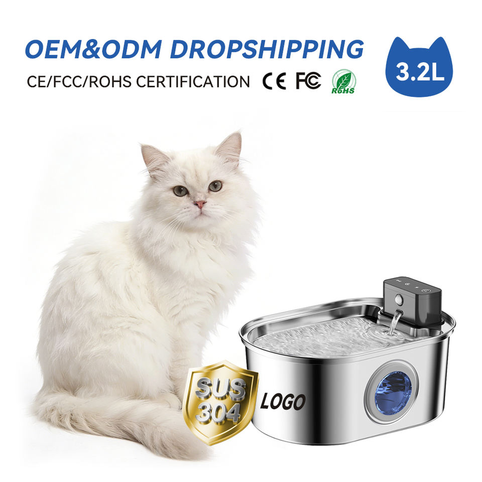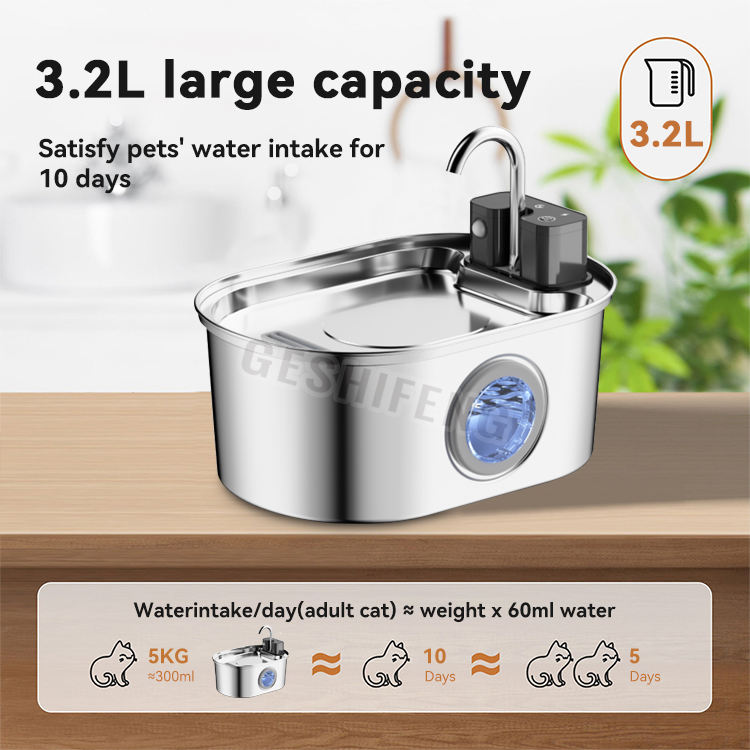 Bebedero Inalámbrico Personalizado de Acero Inoxidable de 3.2L para Perros y Gatos con Batería de 4000mAH, Filtro de Circulación por Inducción Automática