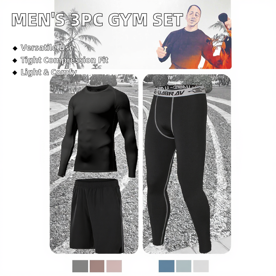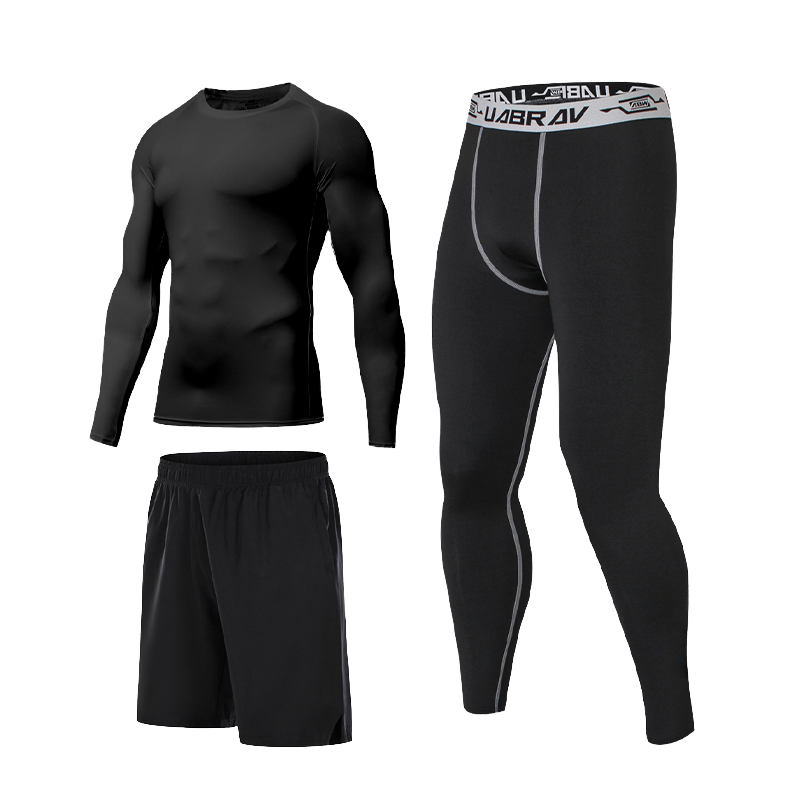 Conjunto de mallas de compresión para entrenamiento de hombre, camisa de manga larga ligera y pantalones cortos para correr para adultos de otoño, 3 piezas