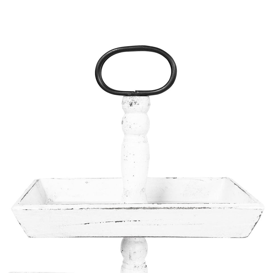 Soporte Rectangular de madera para tartas de 3 niveles, soporte para cupcakes antiguo blanco de madera de Mango, bandeja perfecta para bodas, Navidad, cumpleaños