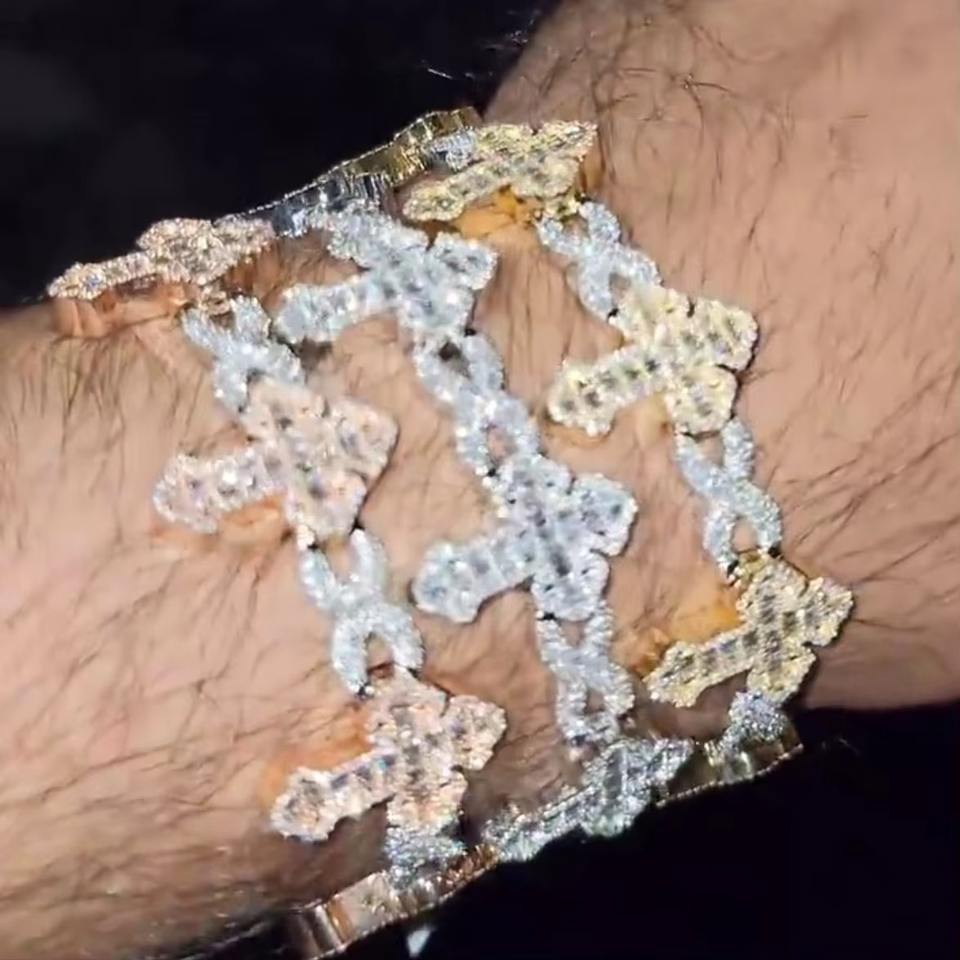 Brazalete de Cadena Cubana con Cruz Múltiple, Chapado en Platino de 3 Tonos, Estilo Hip Hop Vintage, Personalizado, Unisex, Regalo