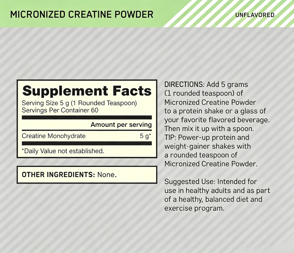 Creatina Monohidrato Pura en Polvo Micronizada 200 Mesh Sin Sabor para Pre-Entrenamiento, 300g Personalizada