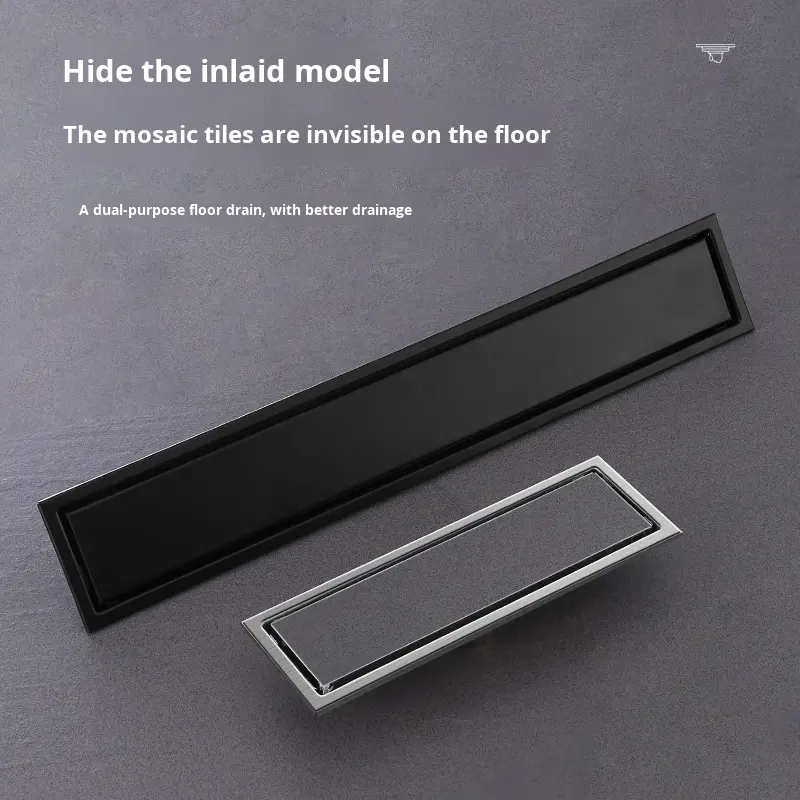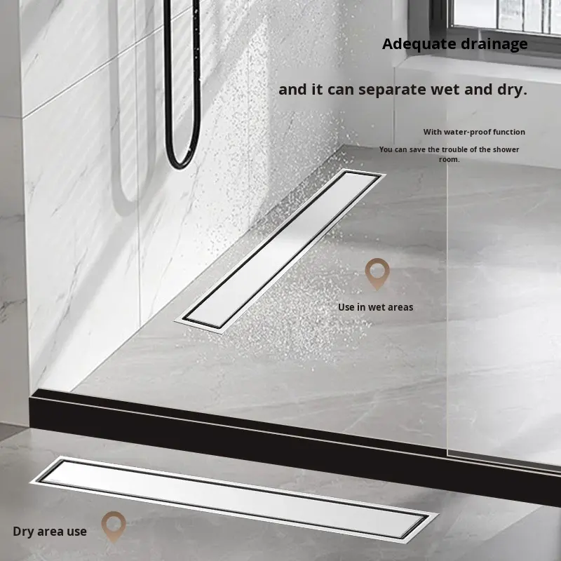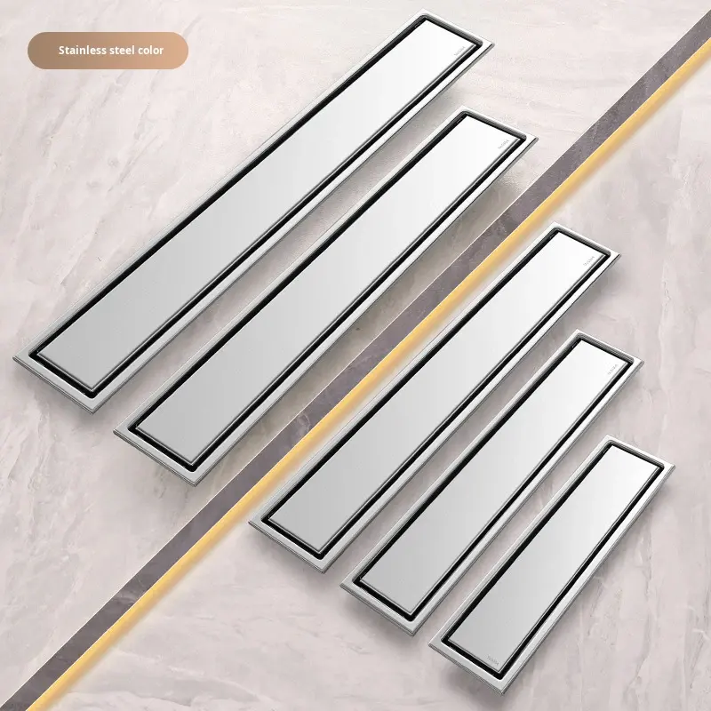 Desagüe de Piso Personalizado de Acero Inoxidable 304, Estilo Americano, Superficie Pulida, Largo, Antiolor, para Baño y Ducha