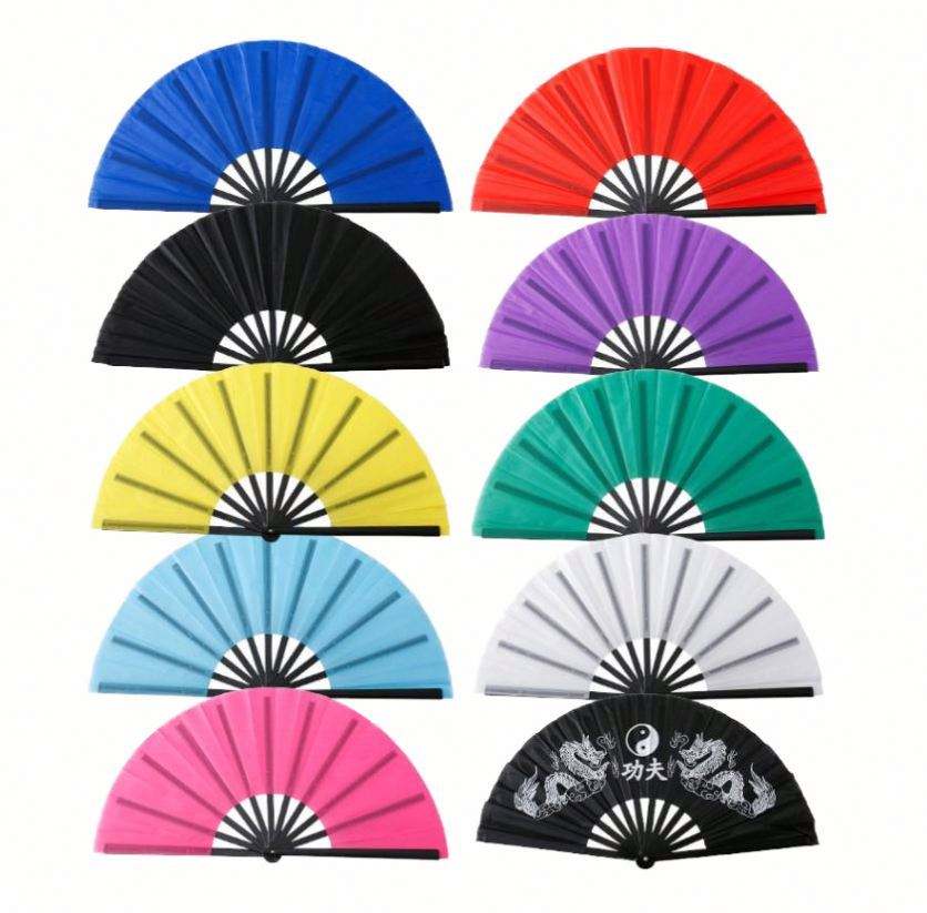 Abanico Plegable de Plástico Grande de 33 cm, Personalizado, Colorido, para Kung Fu, Festivales, Baile, Regalos