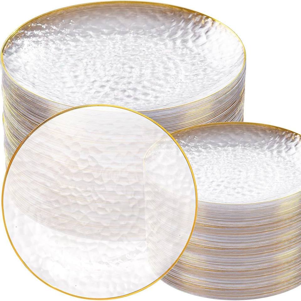 Juego de vajilla de plástico transparente desechable con diseño de encaje blanco personalizado de 350 Uds. Para fiestas, bodas, muestras gratis para ocasiones escolares