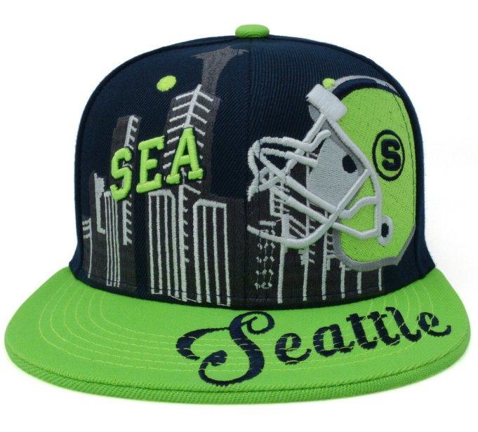 Gorra Snapback Personalizada con Bordado 3D, Diseño Nuevo de Seattle SS26, Casco de Fútbol Americano SEA, Color Verde Lima y Azul Marino, para el Equipo de Fútbol de la Ciudad