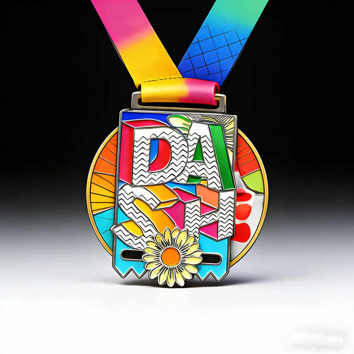 Medalla Personalizada 3D de Esmalte para Eventos DASH, Insignia Metálica Geométrica Colorida con Diseño de Margarita para Carreras y Carreras Benéficas