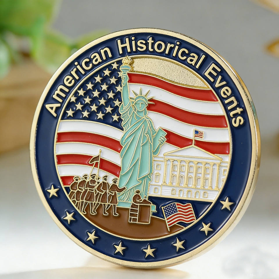 Moneda Personalizada Bañada en Oro 3D | Medallón Coleccionable Patriótico Estadounidense con Diseño de la Estatua de la Libertad y el Capitolio