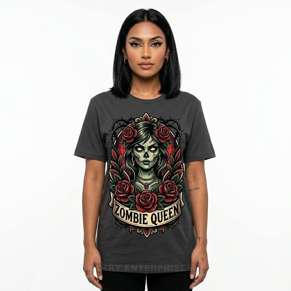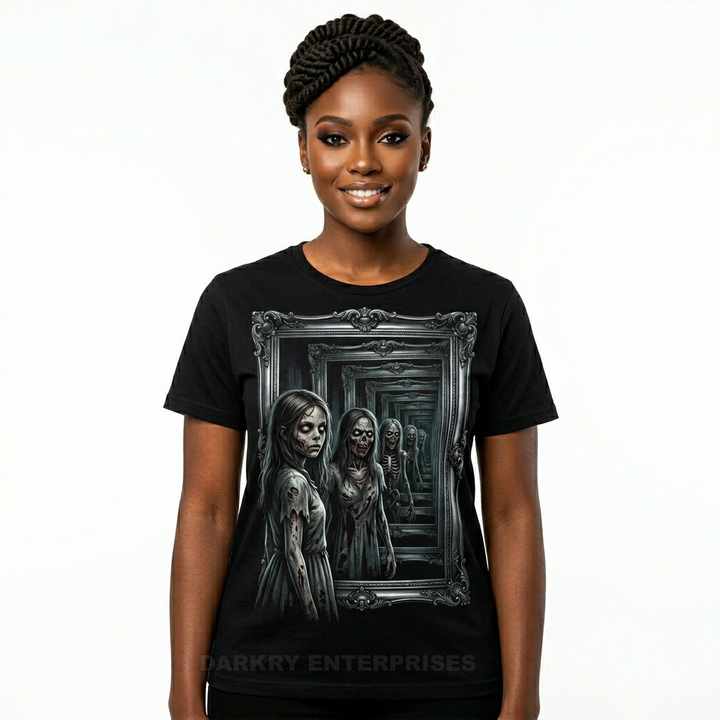 Camiseta Personalizada con Gráfico de Zombi con Espejo Infinito en 3D para Mujer, Camiseta Negra de Algodón, Fabricante de Camisetas de Arte de Terror y Surrealismo, Venta al Por Mayor
