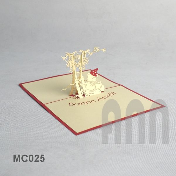 Personalizado 3D Laser Cut Japandi Angel Style Christmas Panda Tarjetas de felicitación de papel con impresión offset en relieve Hecho en Vietnam