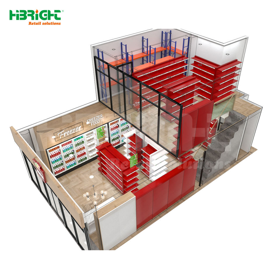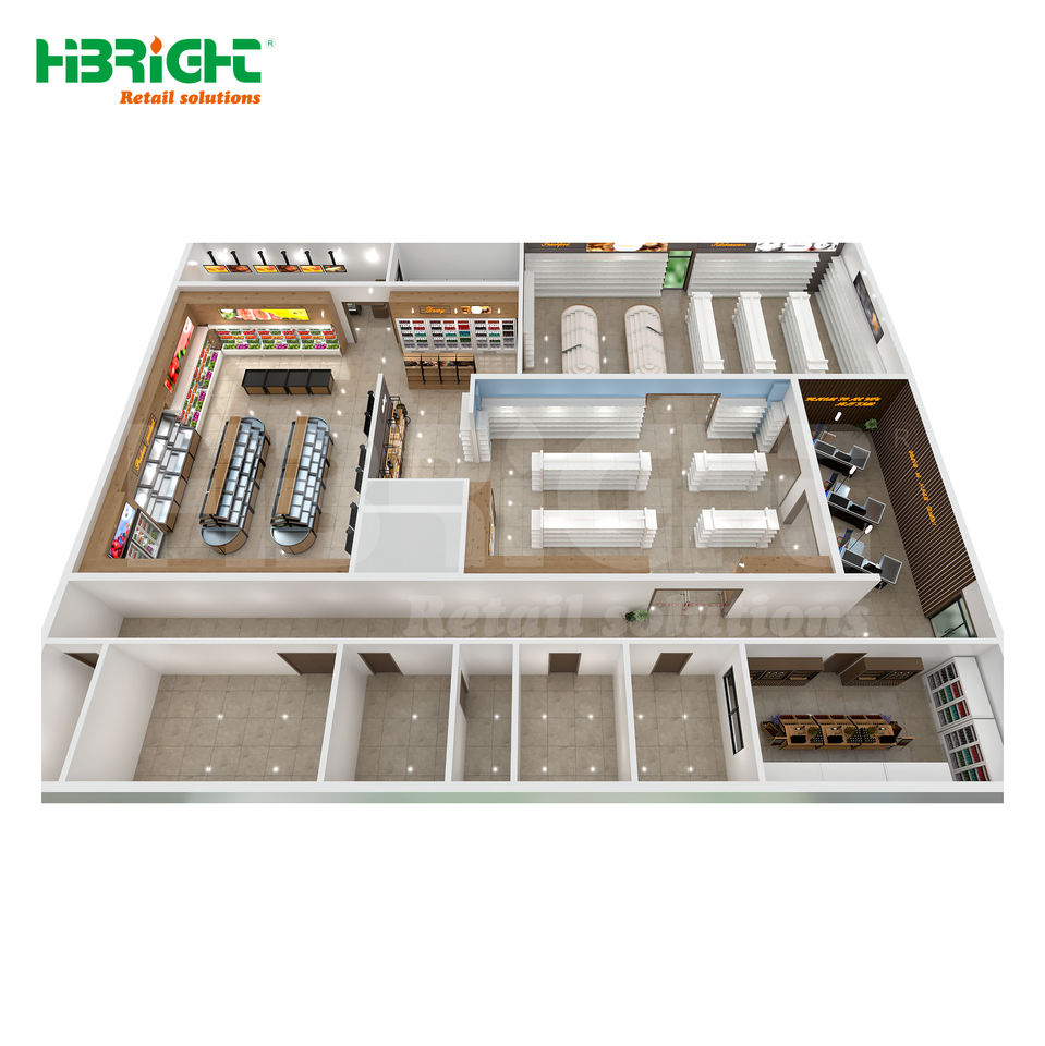Solución de Diseño 3D Personalizada para Supermercados con Estantes de Venta al por Menor y Refrigeradores de Exhibición