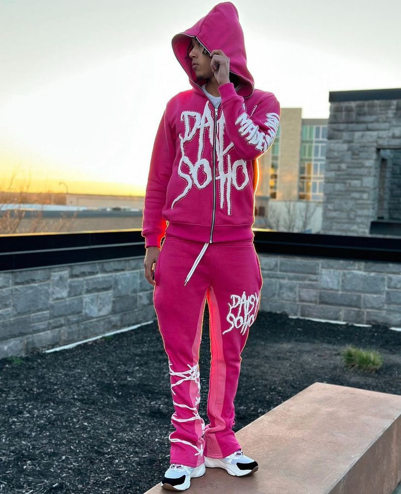 Conjuntos apilados con logotipo 3D personalizado, pantalones acampanados de invierno y sudaderas con capucha estampadas, ropa de entrenamiento de dos piezas, chándal para hombres