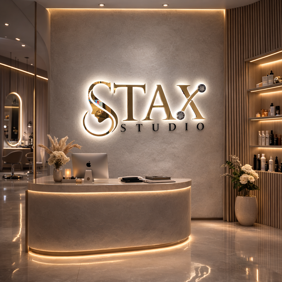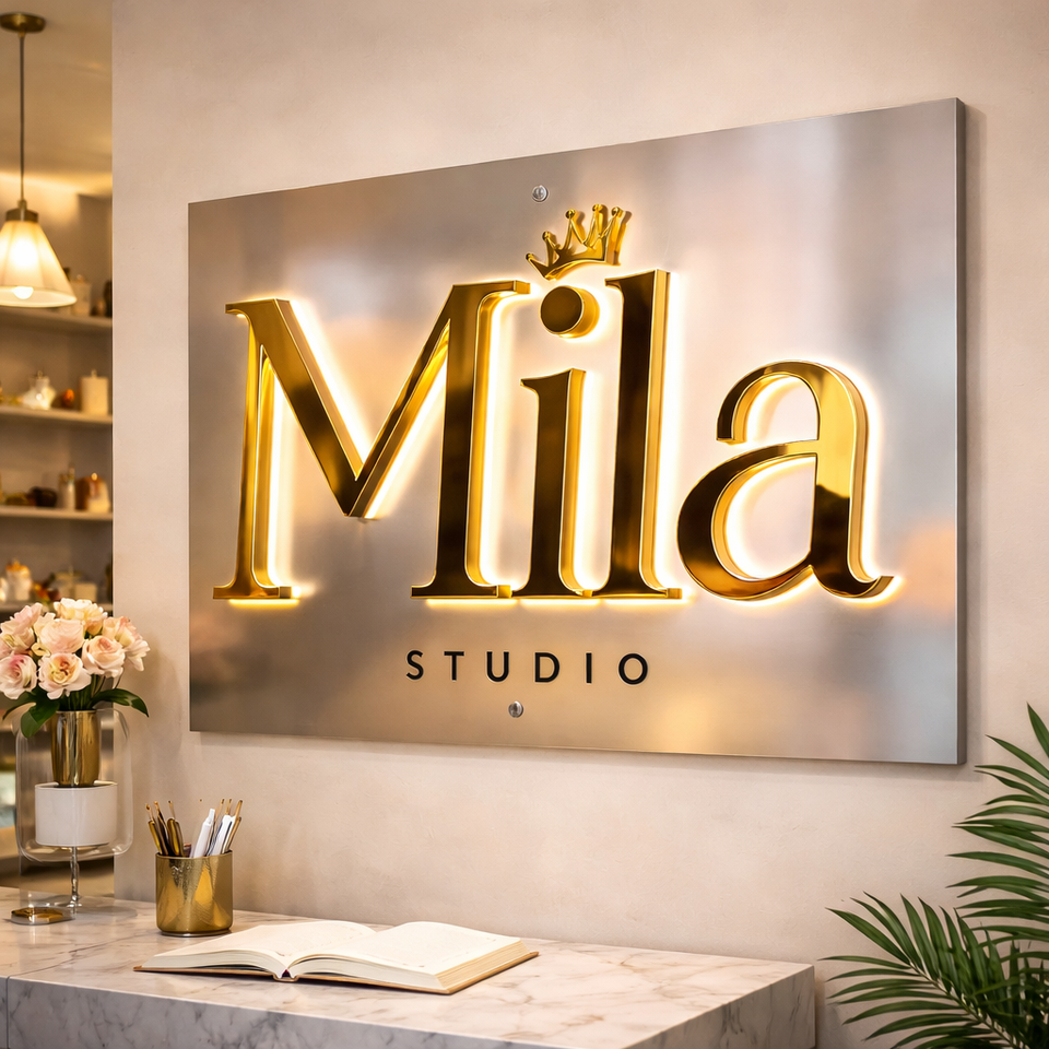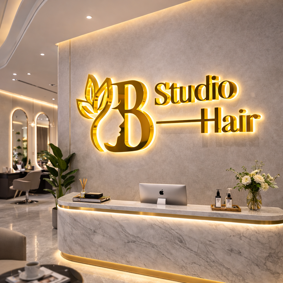 Letrero de metal 3D personalizado con logotipo, letrero iluminado por LED, letrero LED para negocios, logotipo metálico personalizado para decoración de salón