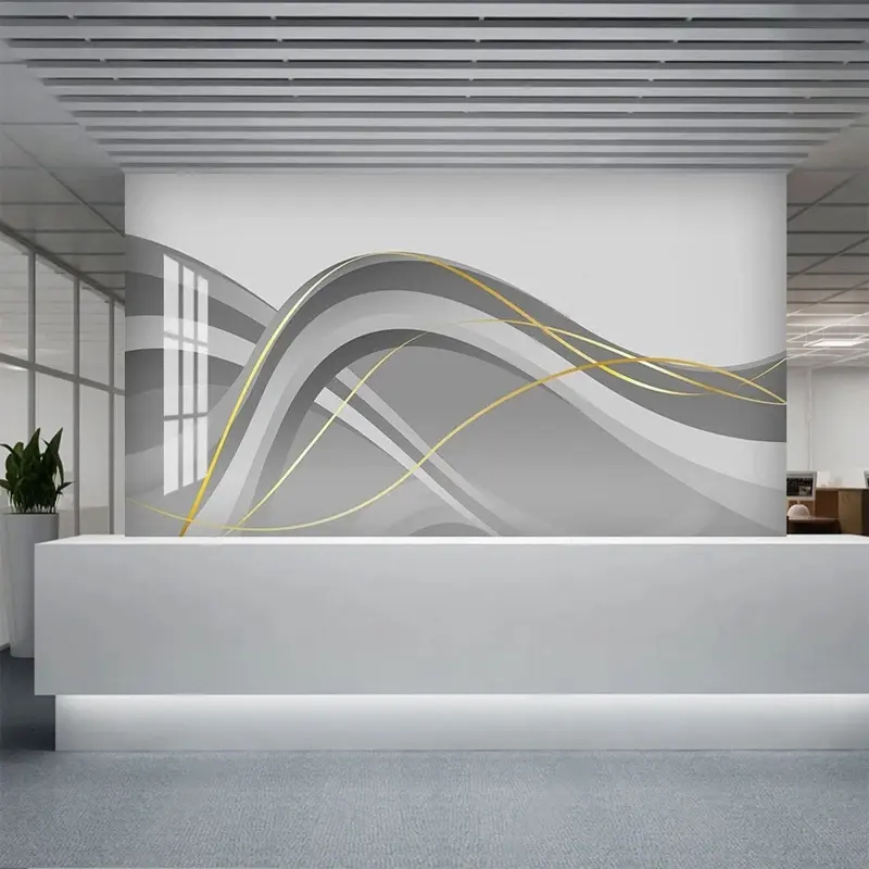 Personalizado 3D moderno lujo línea gris dorado mármol decoración película papel pintado Hotel sala de estar TV sofá Fondo impermeable Mural